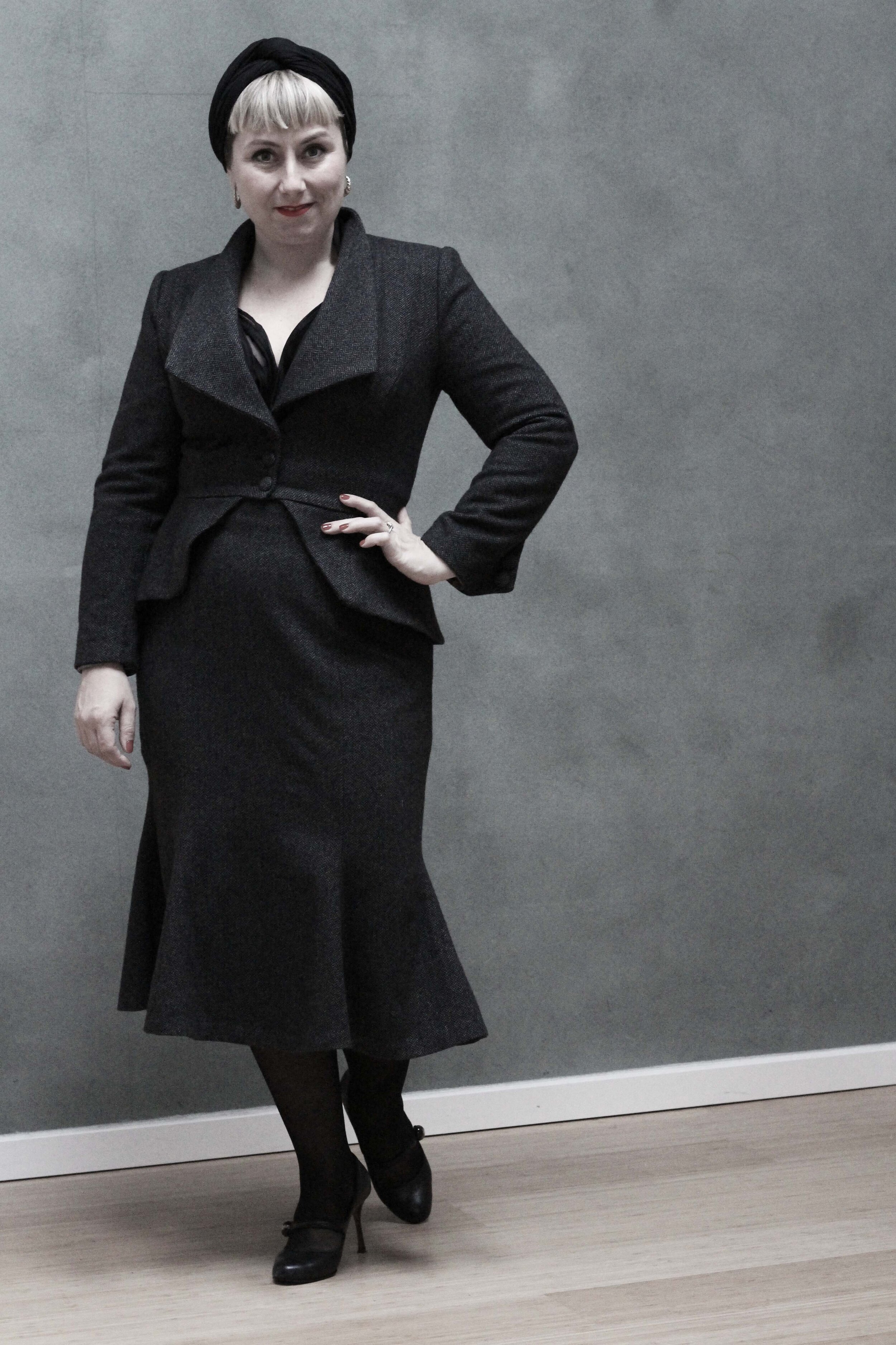 Det er en No. 16 Sevilla nederdel og en No. 10 Stockholm jakke med en anden krave.