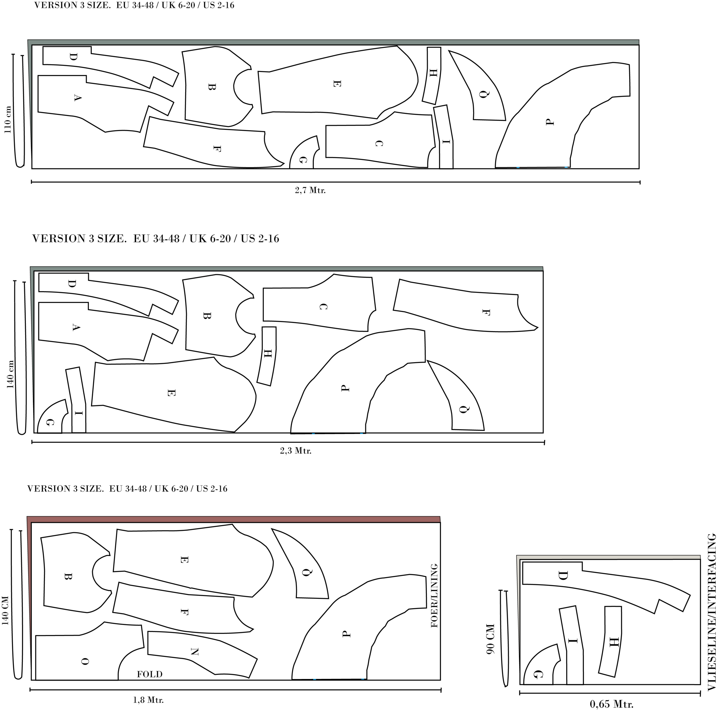 Læg skødet oven på mønsterdelen og marker foldestregerne med en nål i både kanten foroven og på bunden. Fold nu skødet efter pilene på mønsteret og de markerede nåle. Præs skødet i form. Vær omhyggelig.