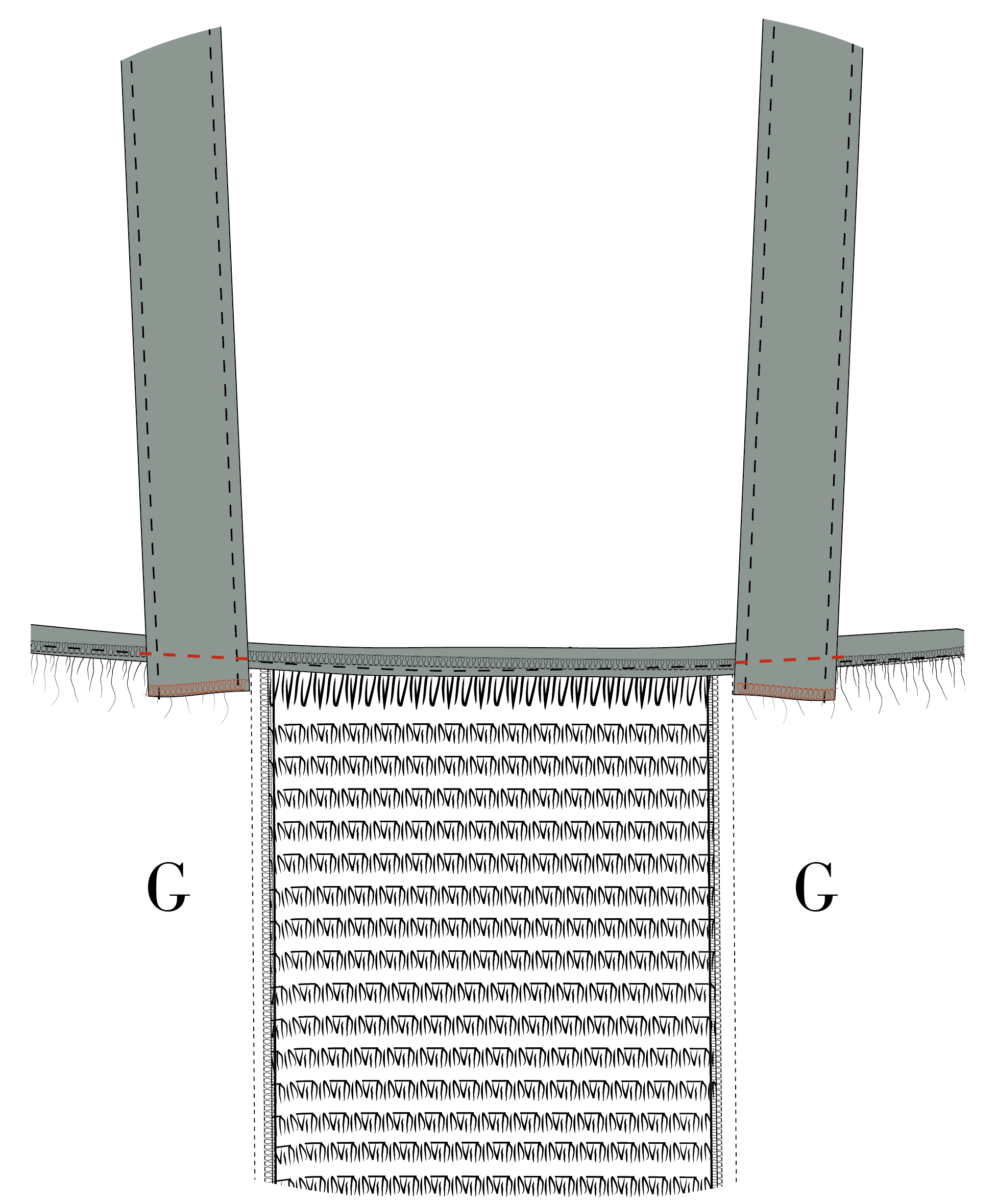 21. Hæft brystdetaljen og belægningen fast til sømrummet på forstykket midt for.