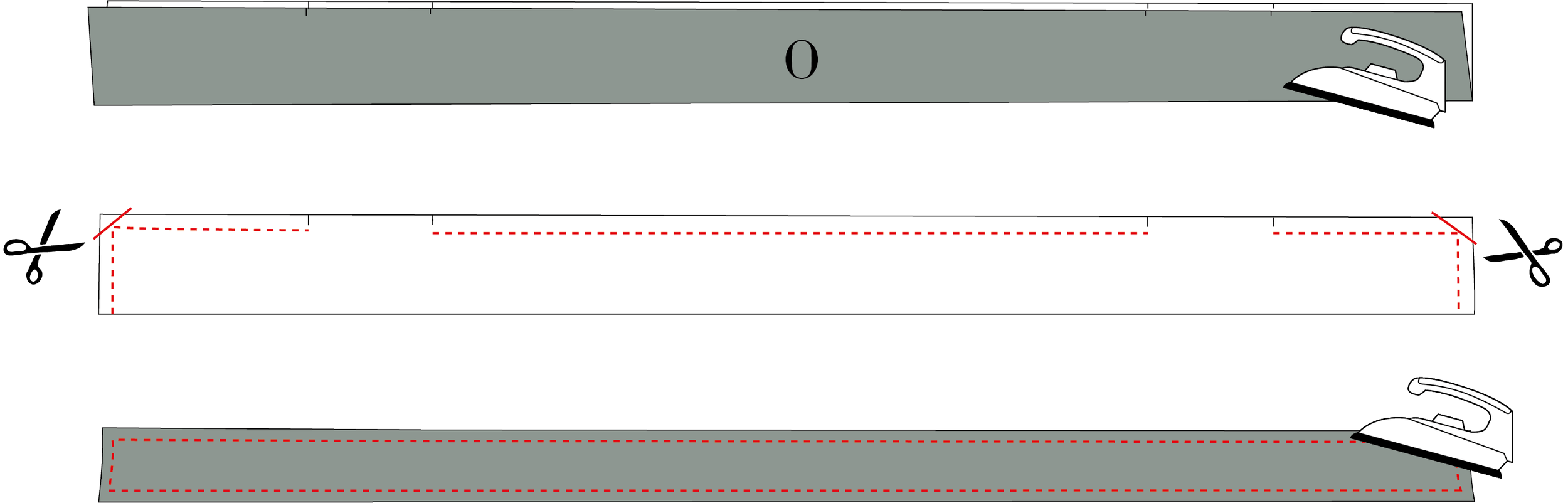 40. Pres alle sømme åbne og pres slidsen ombukkes med 5 cm.