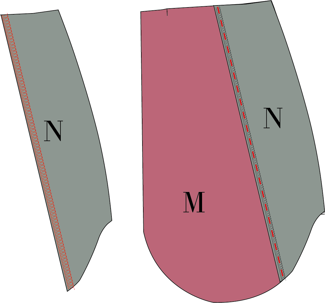 34. Placer lommeposen (M) på den påsyede lommepose (L), ret mod ret. Sy dem sammen.