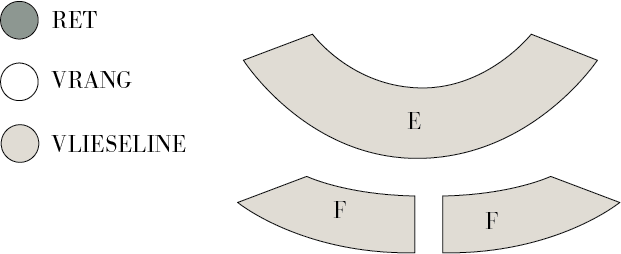 OBS! Mønsterdel B tillægges 1 cm sømrum på MB. mønsterdel E & F klippes også i vlieseline.